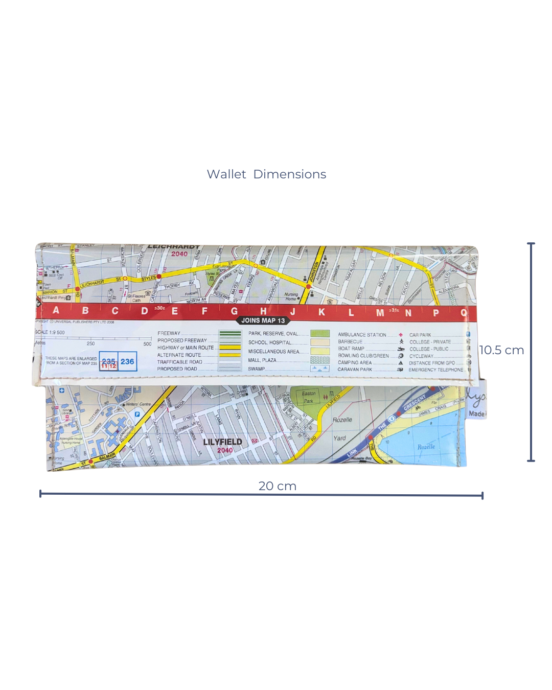 Recycled Street Map Wallet - Lyssy May Handmade Wallet recycled map of Lilyfield, Rozelle, Annandale and Leichhardt