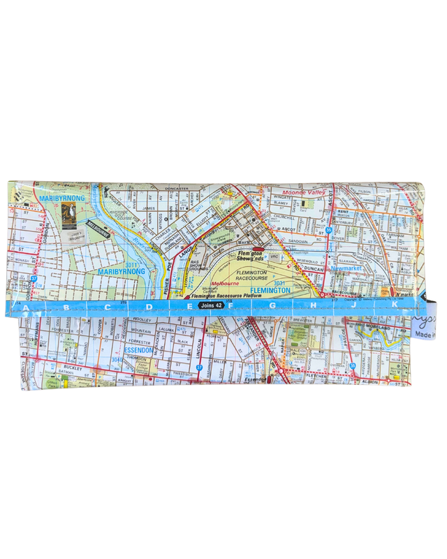 Recycled Street Map Wallet - Lyssy May Handmade Wallet recycled map of Essendon, Moonee Ponds, Ascot Vale and Maribyrnong