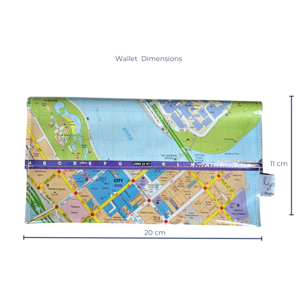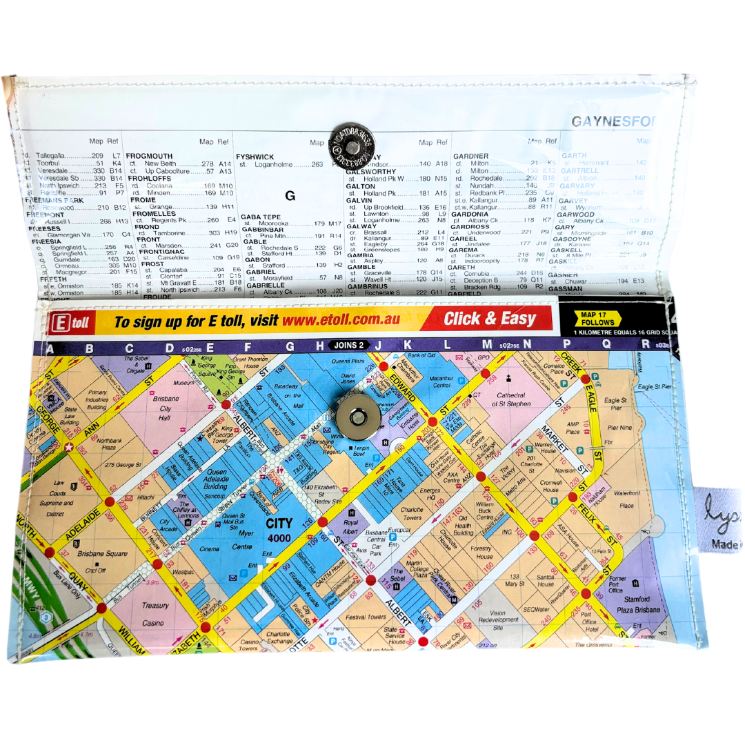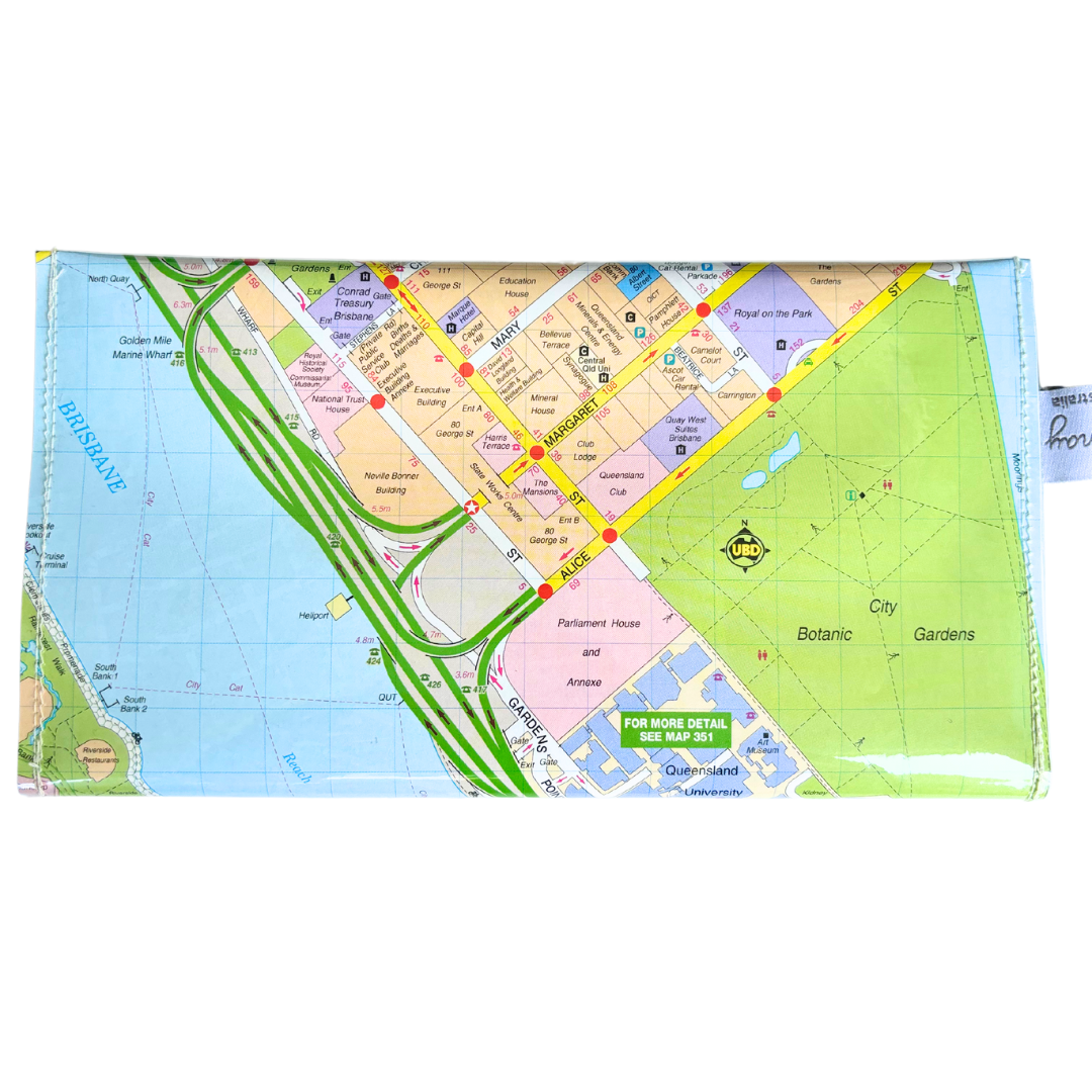 Where are you heading? This wallet is made from the original pages of a Brisbane UBD street map. A true limited edition and collectable!